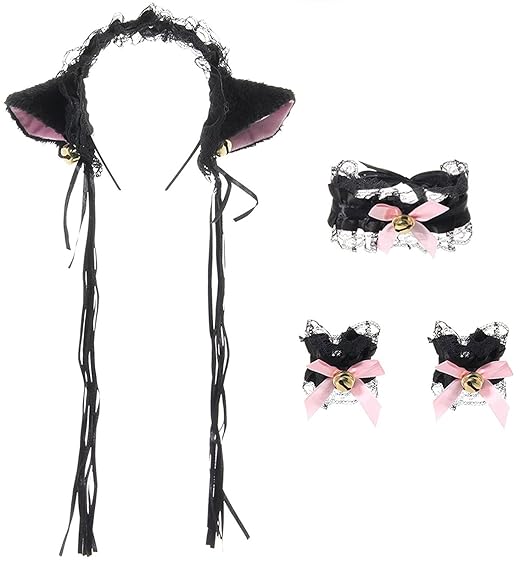 Amazon Com Anime Lace Cat Fox Ears Headband Bell Necklace Choker